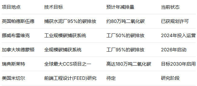 海德堡材料在全球部署的碳捕獲項目對比
