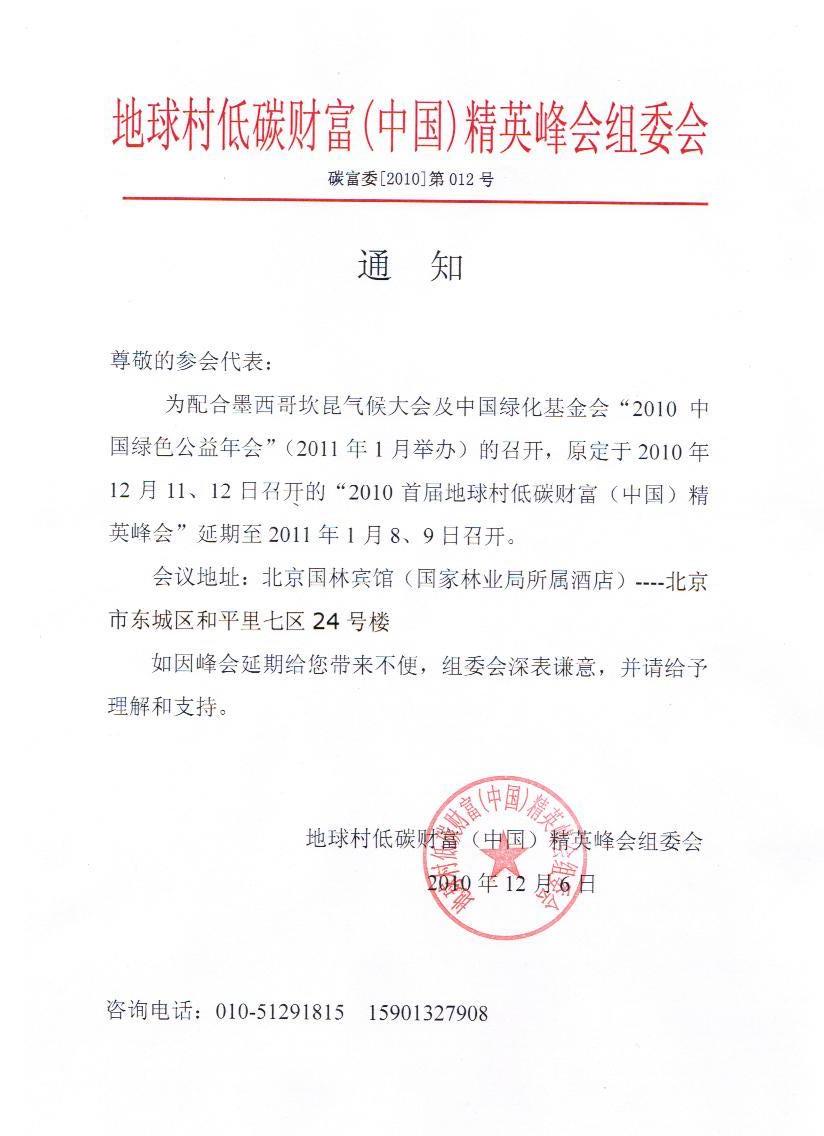 關(guān)于地球村低碳財富峰會延期舉辦通知